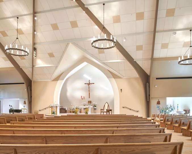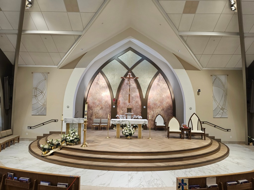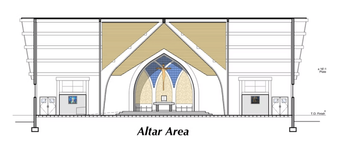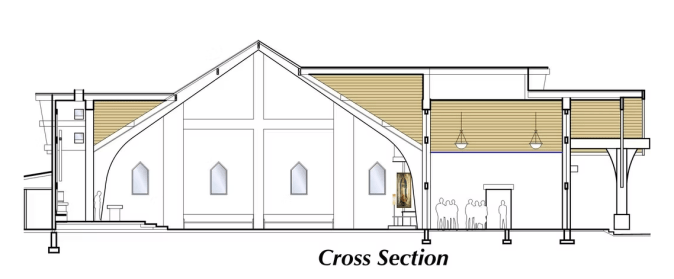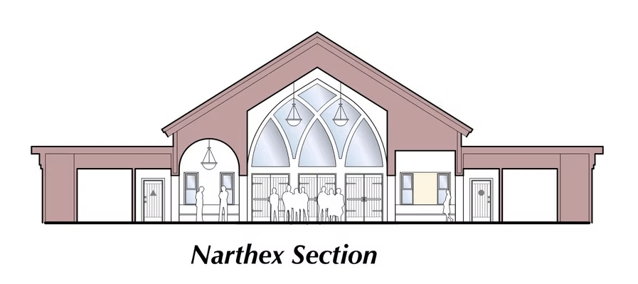 - New ADA ramp to the existing altar had space constraints due to existing doorway to Music Store. Redesign of the Crying Room, and the Vestry.