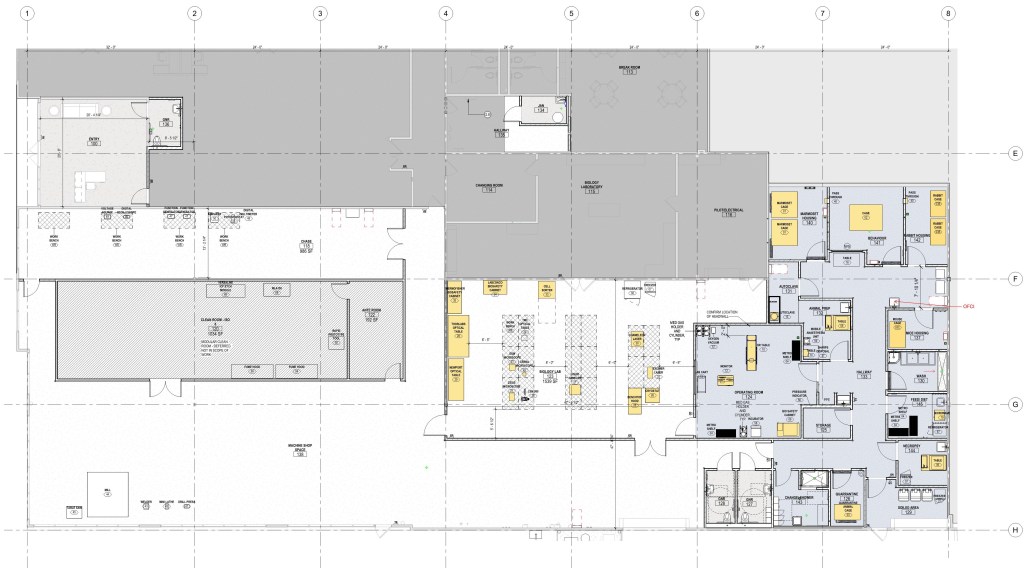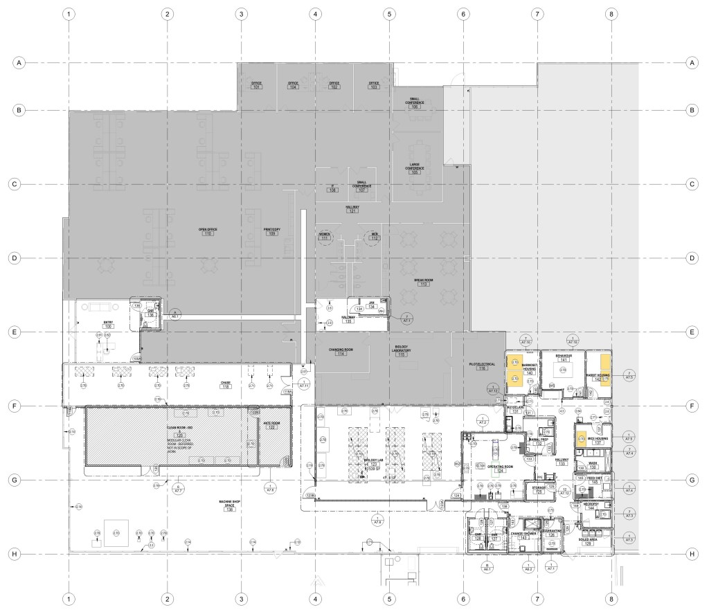 - Tenant improvement for a medical research lab. Tenant improvement includes addition of gender-neutral restrooms, operating room, animal housing rooms, wash rooms, feed room, clean room with chase and a lab. Tenant improvement also includes new mechanical roof top equipment and new exterior generator with a new enclosure.