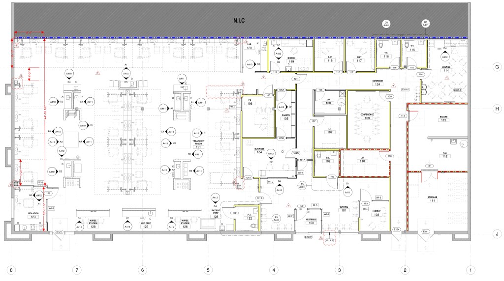 - New interior tenant improvement for new dialysis clinic in existing suite of existing building. The scope of the project included new light fixtures with new ceiling, new signage and treatment stations. A new cooling tower and rooftop mechanical unit will also be installed. The interior renovation also included new treatment stations with substantial underground work along with new utility services were required to complete the project. The finished project consisted of sheet vinyl flooring, acoustical ceilings, and painted accent walls.