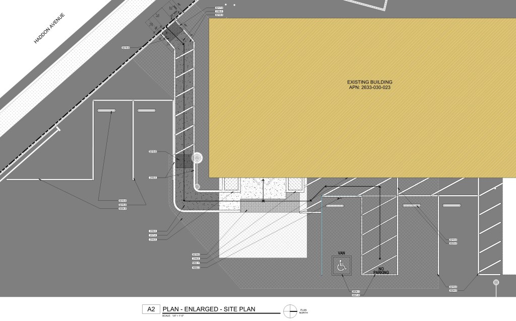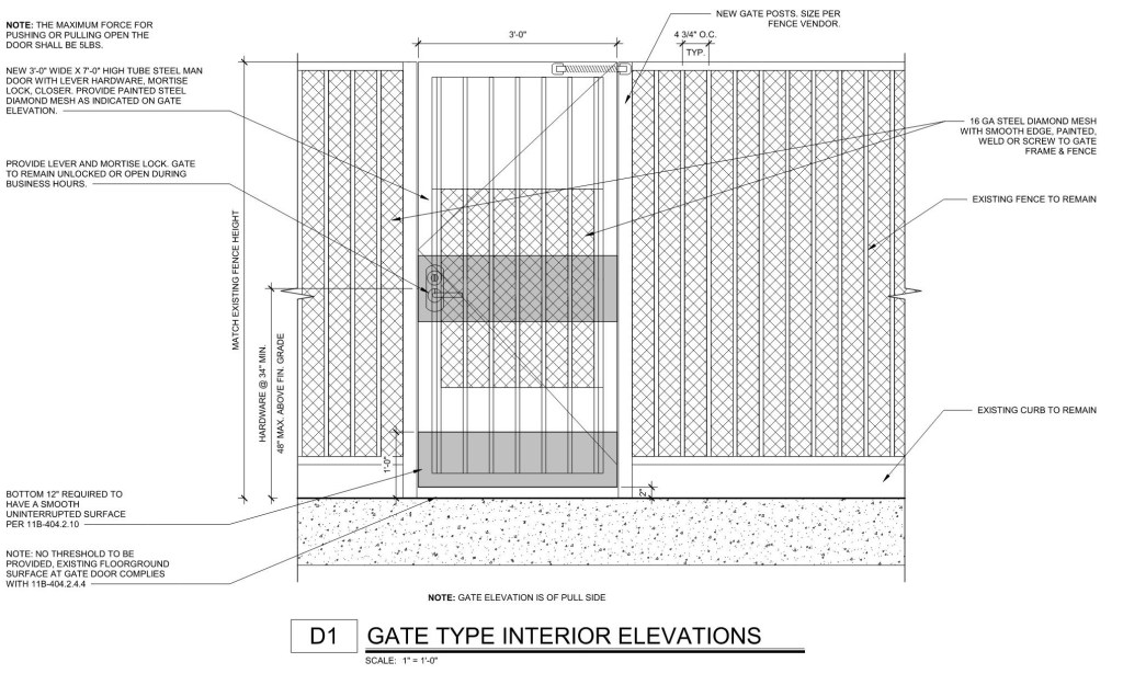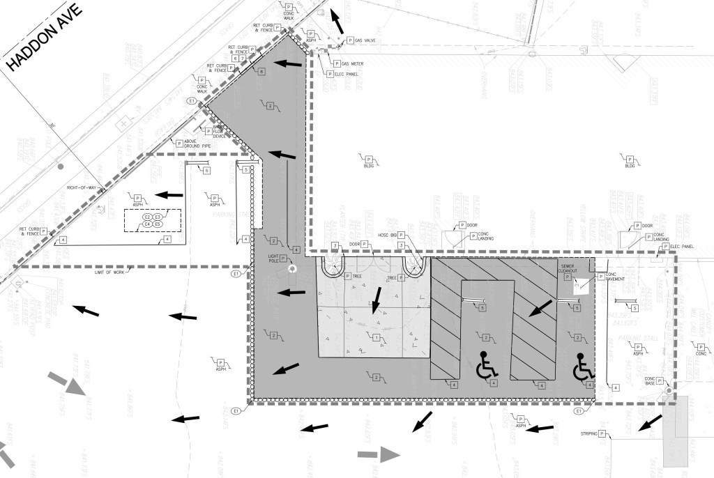 - New accessible path to the existing sidewalk that will include a new pedestrian gate. Redesigning the new ADA stalls to code compliance.