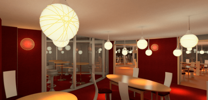 - The concept of this vegan restaurant is based on the Three Jewels of Buddhism which are the three beliefs that Buddhists take refuge in, and look forward for guidance, in the process known as taking refuge. The first sphere within the space represents Buddha, the enlightened one; the ideal or highest spiritual potential that exists within all being. The second sphere represents dharma, the teaching; the teachings of the Buddha that lead to the path to enlightenment, and the last sphere represents the community; the community of those who have attained enlightenment, who may help a practicing Buddhist to do the same.