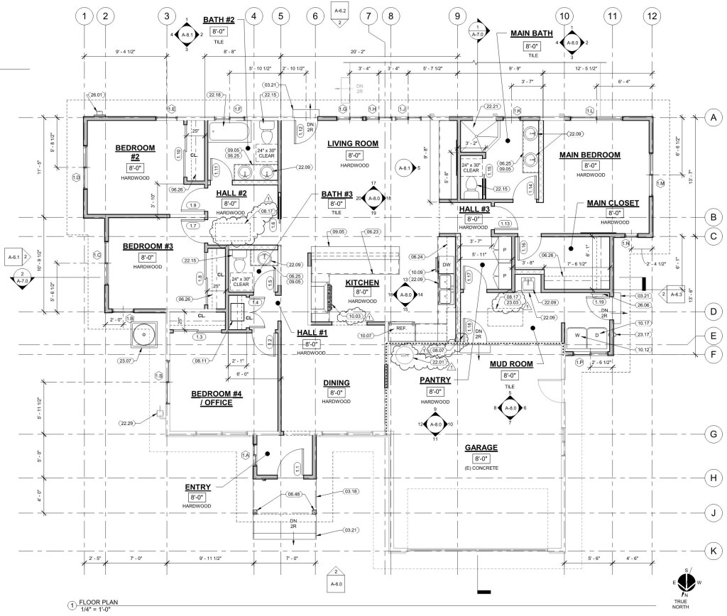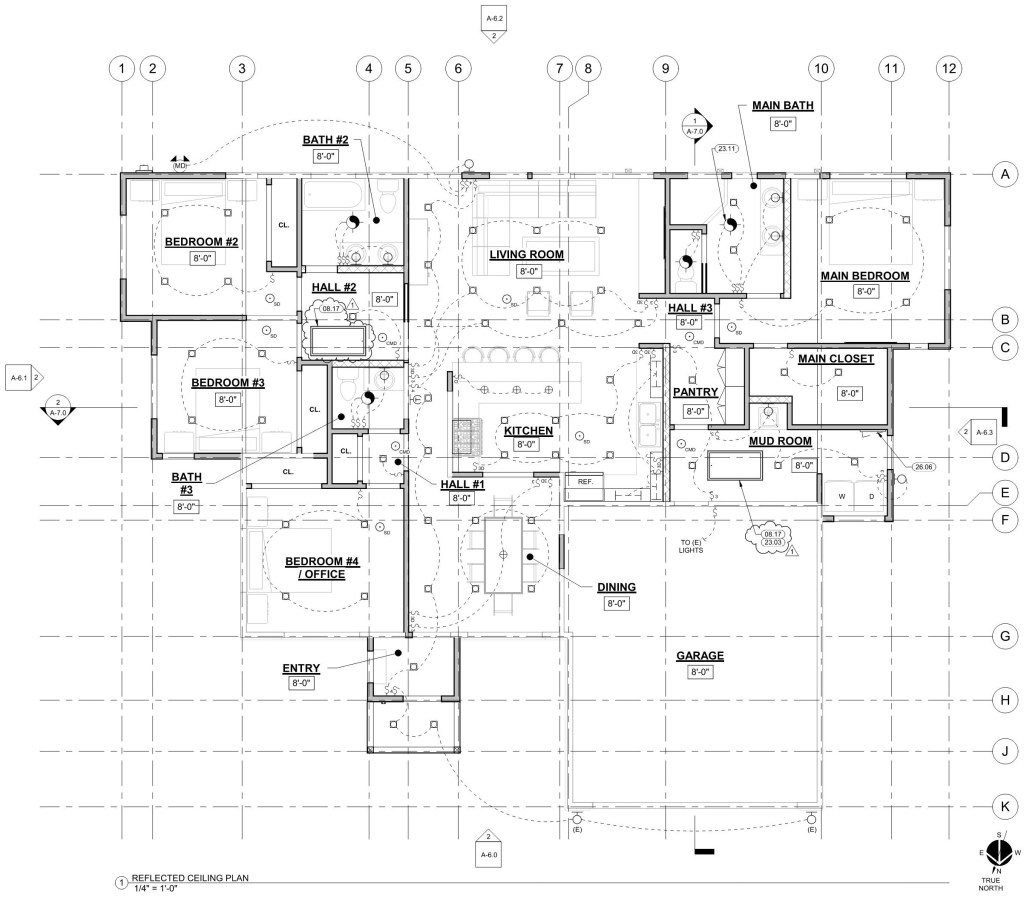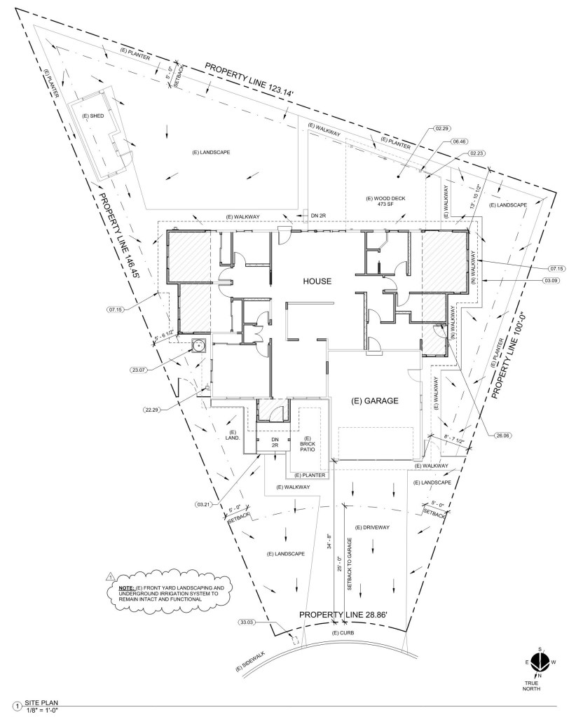 - The parcel is located in a cul-de-sac, which makes the overall footprint of the house a challenge to work with. We had to still maintain the setbacks for fire clearance and code compliance, but utilize as much space as we could at the side yards.
